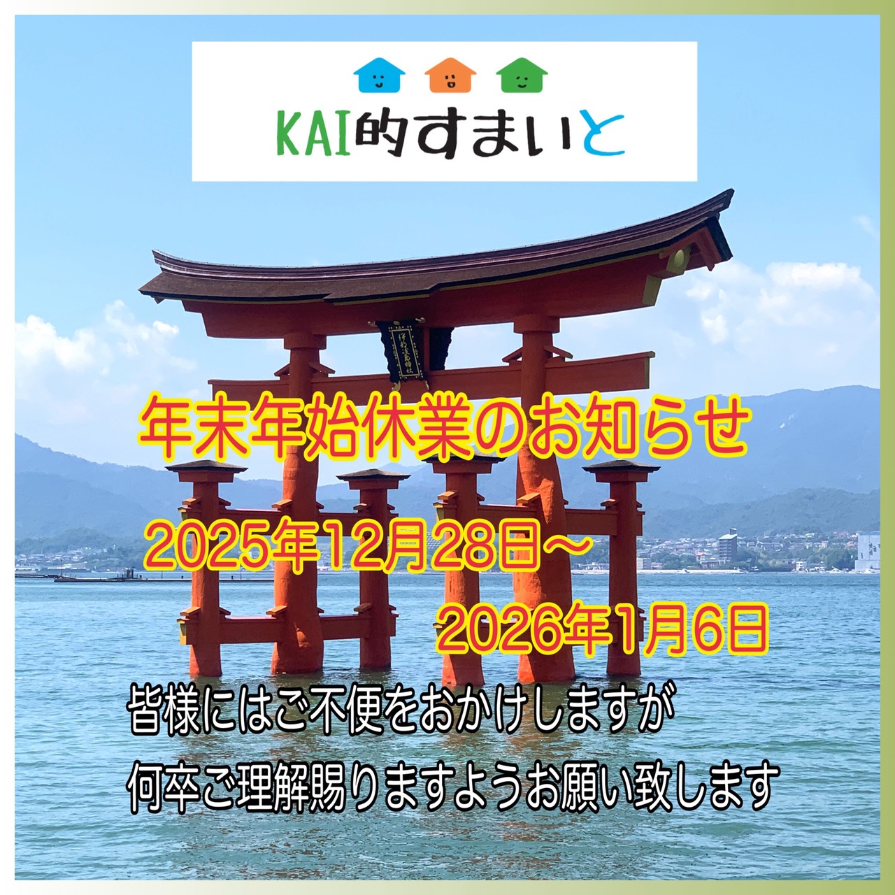 誠に勝手ながら ~KAI的すまいと~ ㈱古屋製作所は12月28日より年末休業となります。